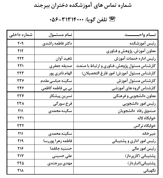 شماره تماس همکاران